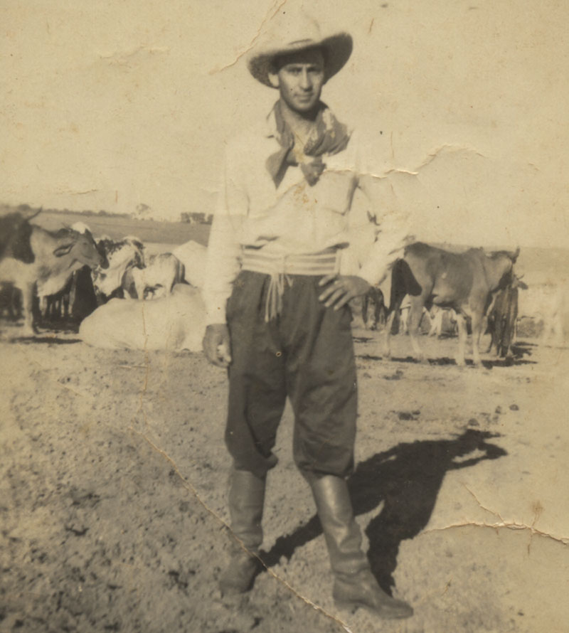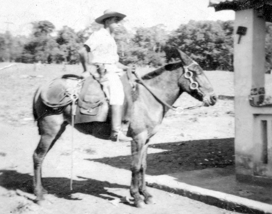 Ílio Lopes, atual ponteiro de boiada da Comitiva Boi Soberano, em foto datada de 1.957, tirada no Retiro da Lagoa, Fazenda Guariroba, Pontes Gestal-SP