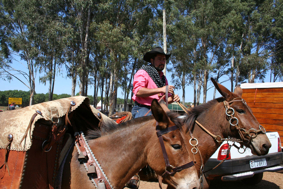 Celso Luís Fiamenghi, o "Dedinho", puxa a cargueira "Colina".