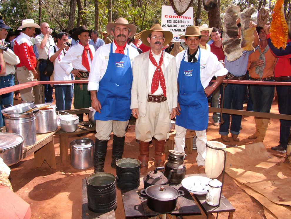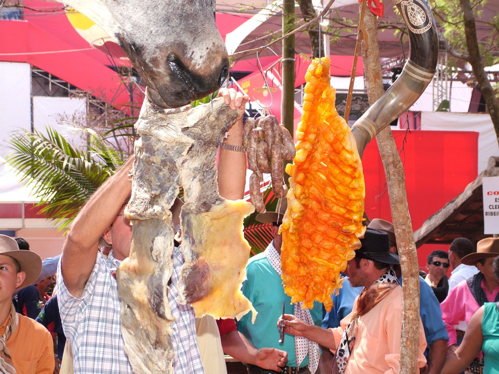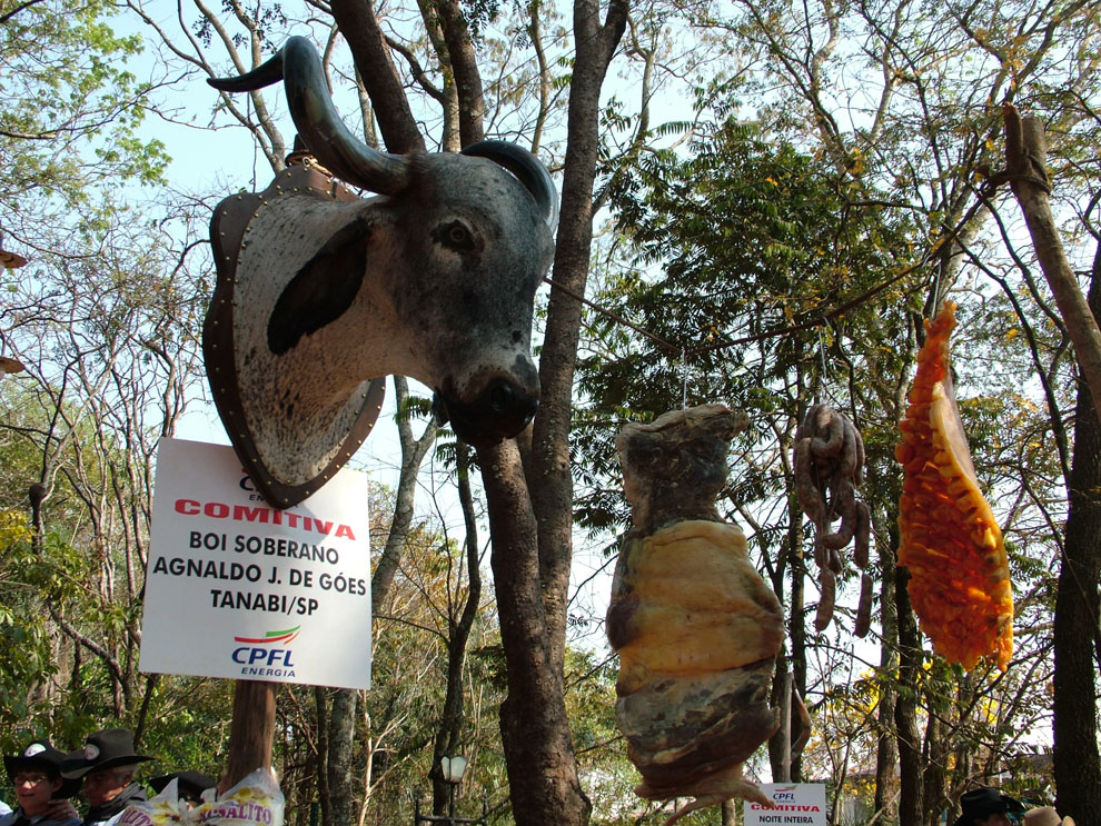 O charque, a lingüiça de porco e a panceta preparados pelo cozinheiro da Comitiva Boi Soberano, Sérgio da Silva Félix.