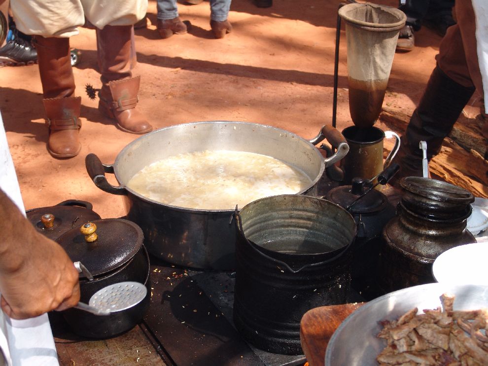 Agora é hora de cozinhar para o povo ali presente. Vejam só o tamanho da panela...