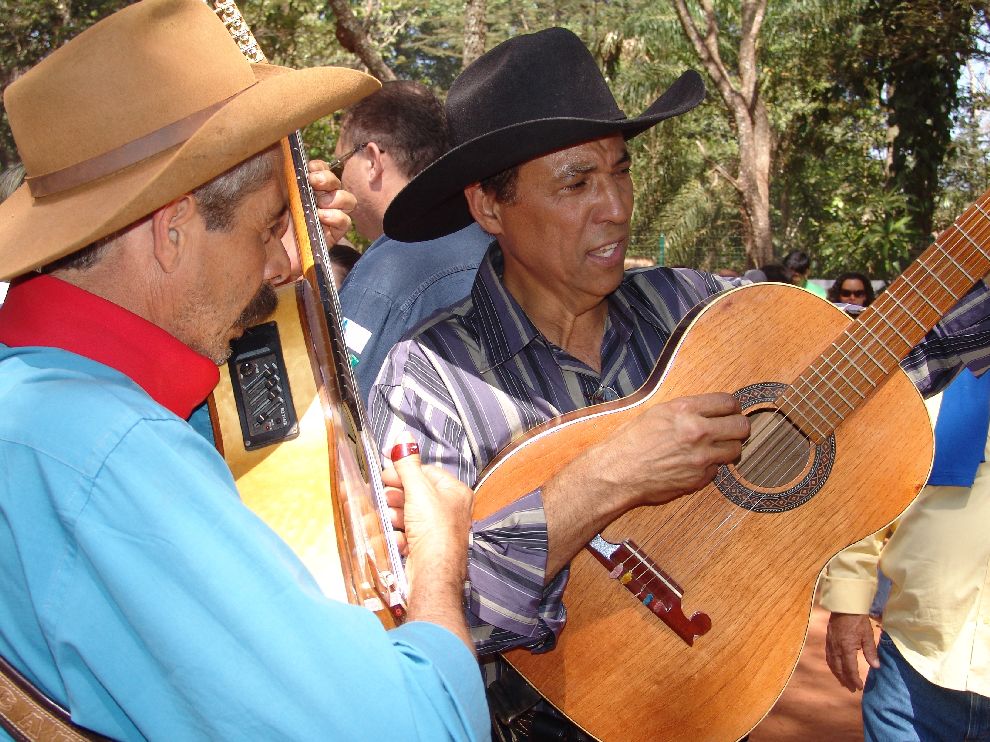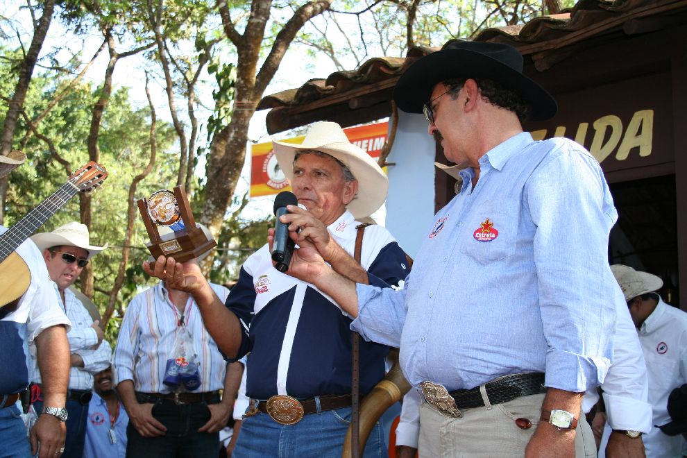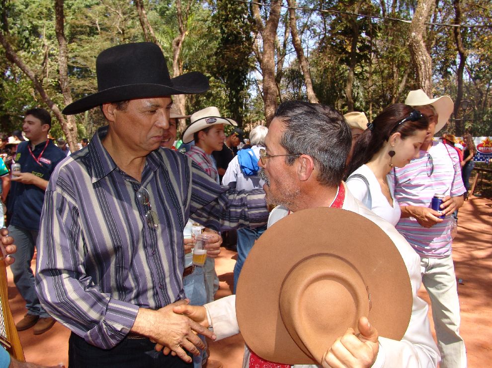 O comissário cumprimenta "Praiano", famoso cantor sertanejo.