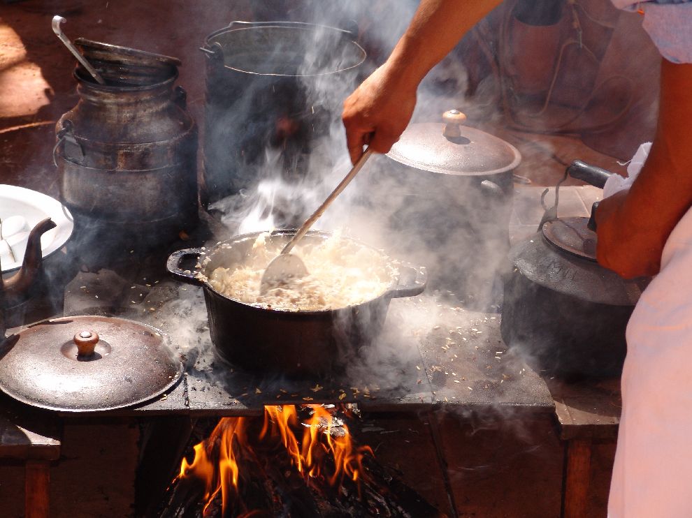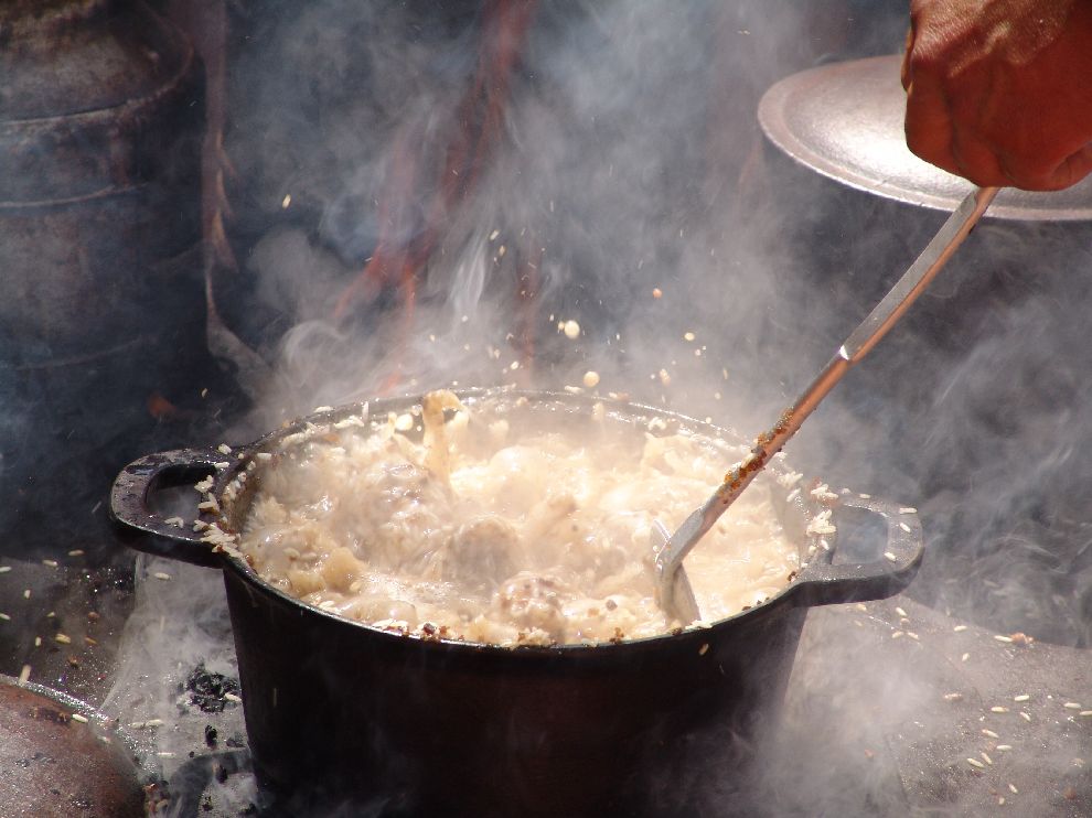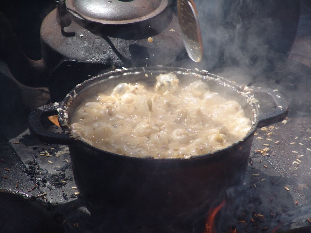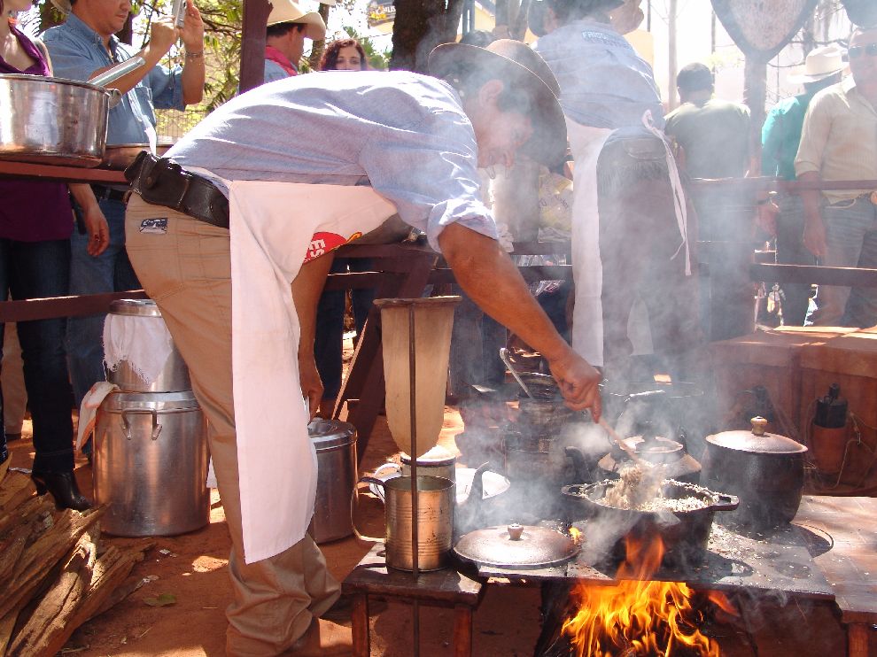 A "queima do alho" é o preparo da comida dos peões de boiadeiro das comitivas de transporte de boiada. Quando os boiadeiros se aproximavam do local onde a comida estava sendo preparada, sentiam o forte cheiro do alho sendo frito na panela e exclamavam: "o cozinheiro já está queimando o alho", isto é, está cozinhando. Daí surgiu a expressão que hoje dá nome ao famoso concurso de culinária que se realiza todo último sábado da Festa do Peão de Boiadeiro de Barretos, no Ponto de Pouso. A comida é feita em pequenos fogões dobráveis, chamados trempes, que viajam sobre os cargueiros. Os pratos são: arroz de carreteiro, feijão gordo, paçoca de carne e carne assada na chapa.