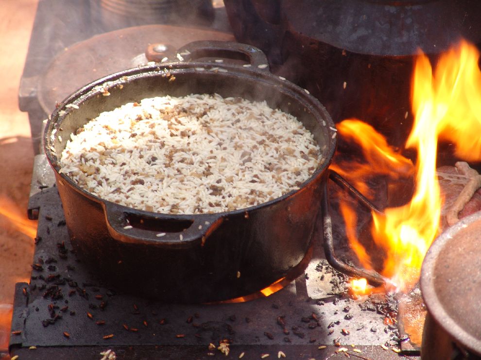 A "queima do alho" é o preparo da comida dos peões de boiadeiro das comitivas de transporte de boiada. Quando os boiadeiros se aproximavam do local onde a comida estava sendo preparada, sentiam o forte cheiro do alho sendo frito na panela e exclamavam: "o cozinheiro já está queimando o alho", isto é, está cozinhando. Daí surgiu a expressão que hoje dá nome ao famoso concurso de culinária que se realiza todo último sábado da Festa do Peão de Boiadeiro de Barretos, no Ponto de Pouso. A comida é feita em pequenos fogões dobráveis, chamados trempes, que viajam sobre os cargueiros. Os pratos são: arroz de carreteiro, feijão gordo, paçoca de carne e carne assada na chapa.