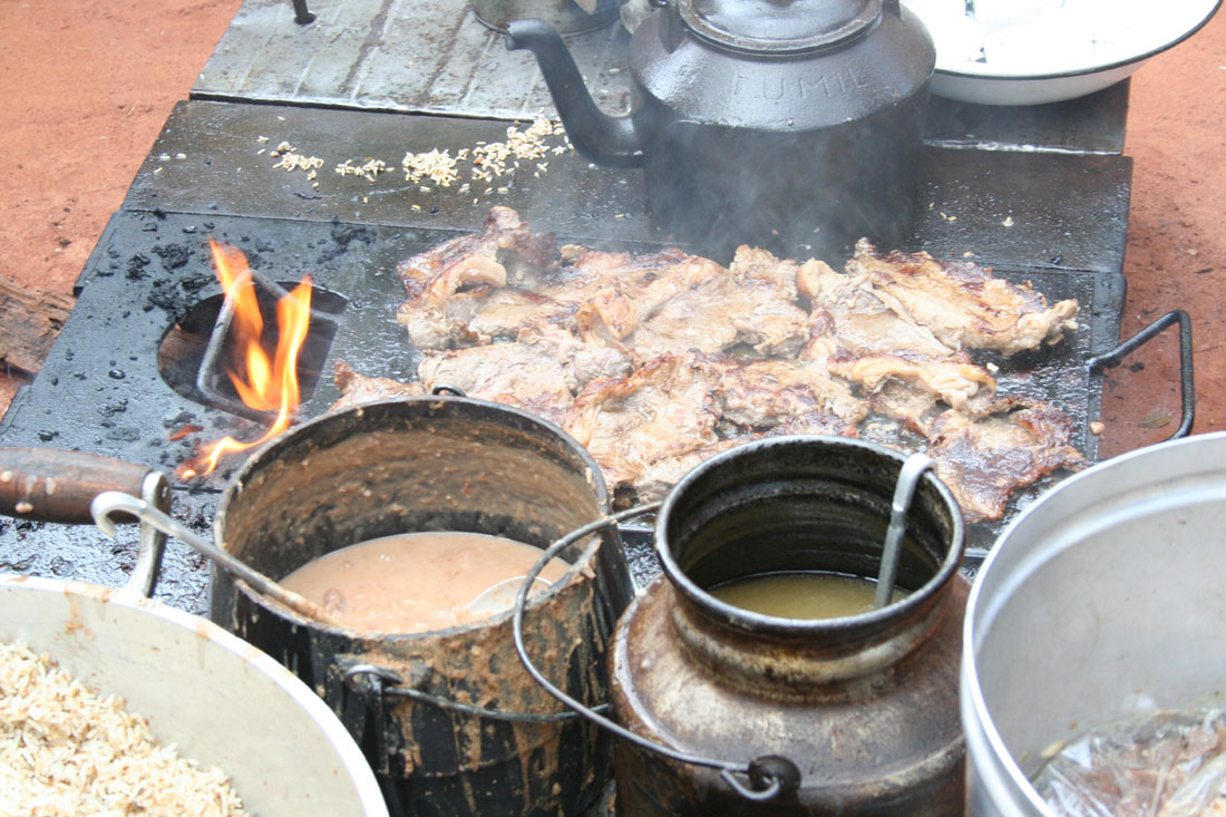A "queima do alho" é o preparo da comida dos peões de boiadeiro das comitivas de transporte de boiada. Quando os boiadeiros se aproximavam do local onde a comida estava sendo preparada, sentiam o forte cheiro do alho sendo frito na panela e exclamavam: "o cozinheiro já está queimando o alho", isto é, está cozinhando. Daí surgiu a expressão que hoje dá nome ao famoso concurso de culinária que se realiza todo último sábado da Festa do Peão de Boiadeiro de Barretos, no Ponto de Pouso. A comida é feita em pequenos fogões dobráveis, chamados trempes, que viajam sobre os cargueiros. Os pratos são: arroz de carreteiro, feijão gordo, paçoca de carne e carne assada na chapa.