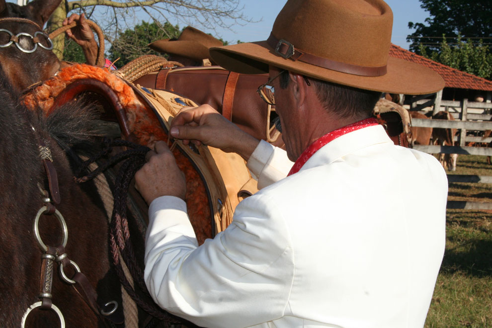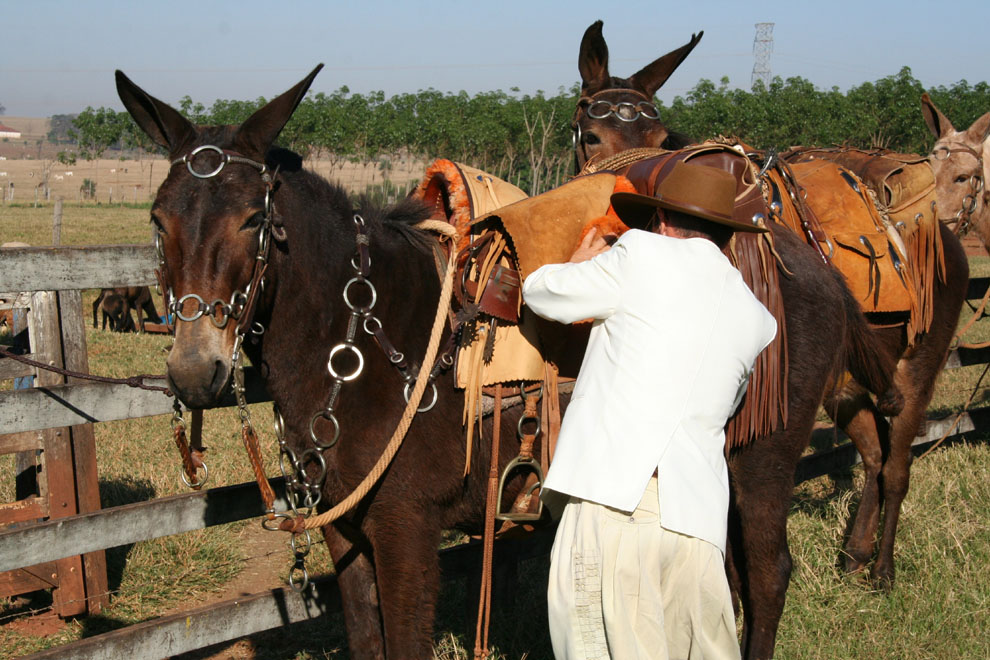 O comissário arreando a besta.