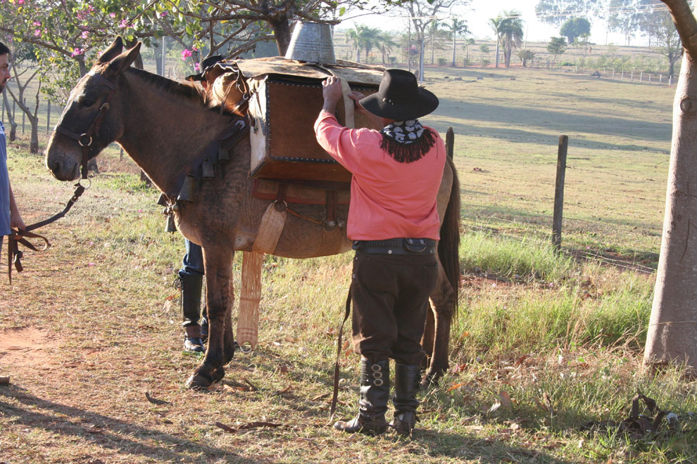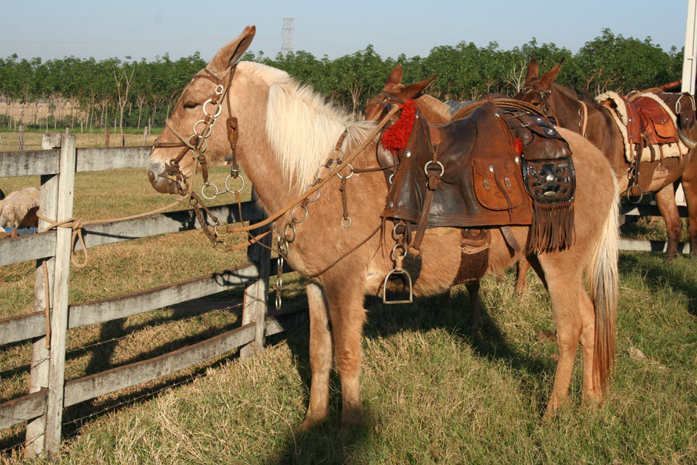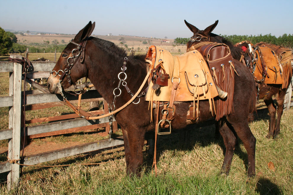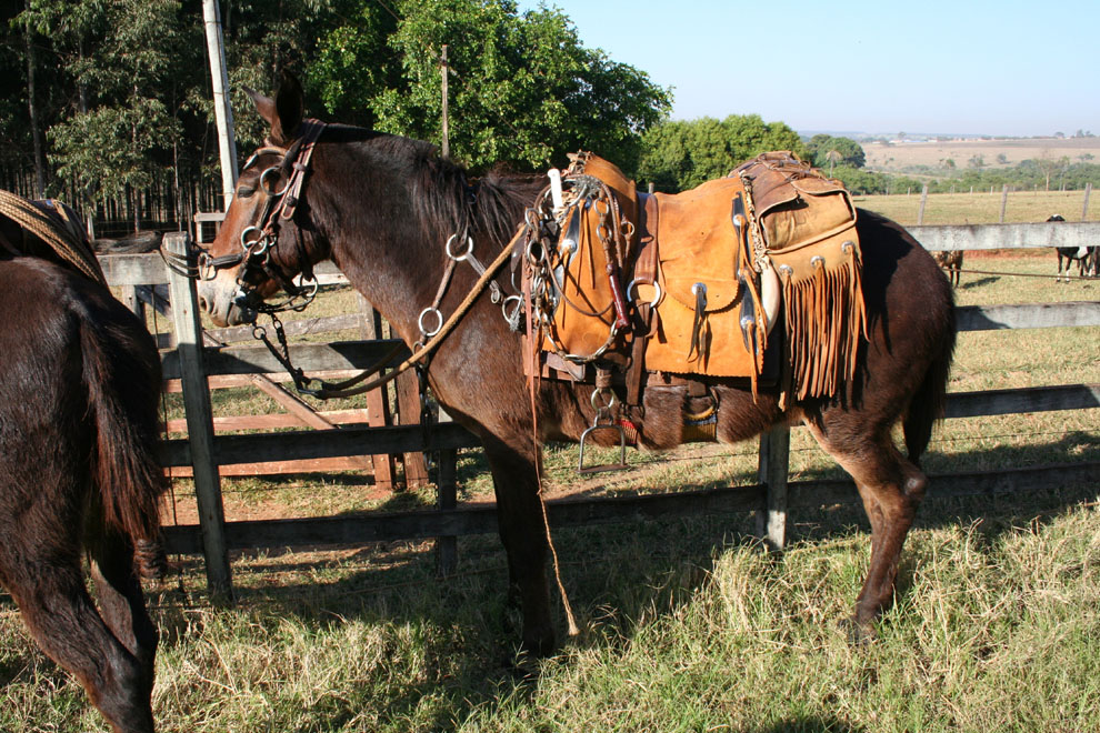 A mula do comissário, "Princesa", pronta para a viagem.