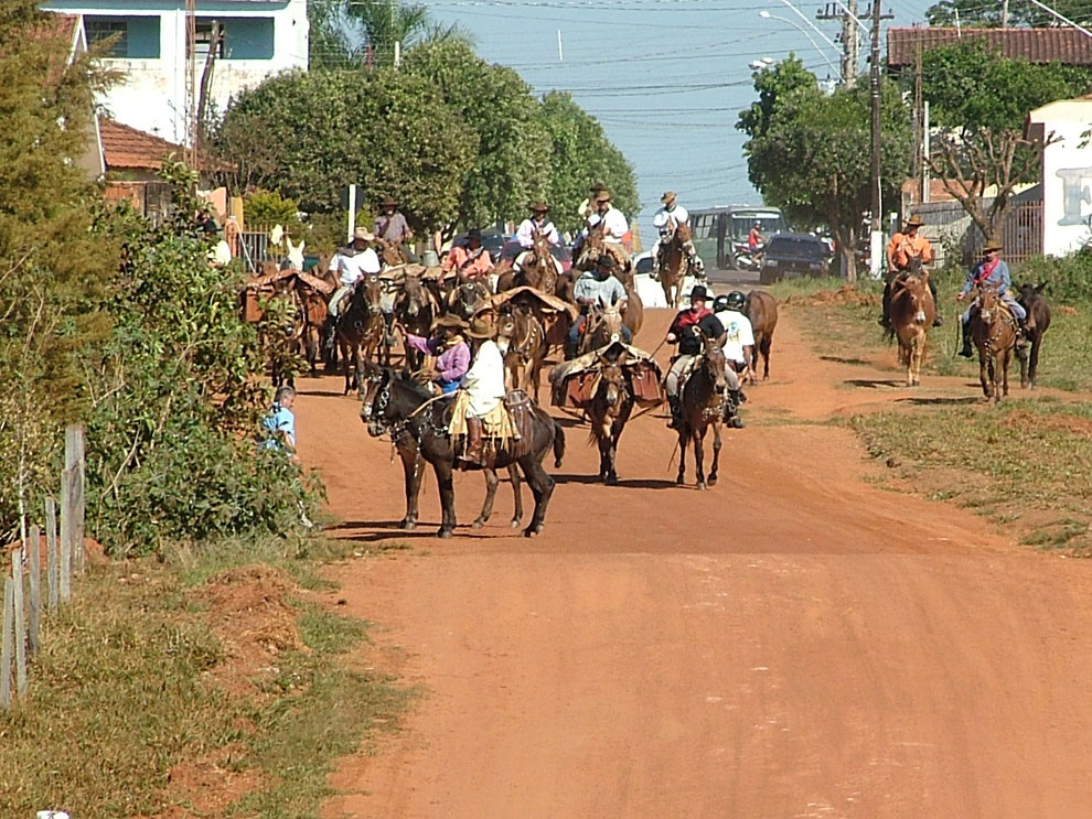 A comitiva deixa o asfalto da cidade e pega o estradão.