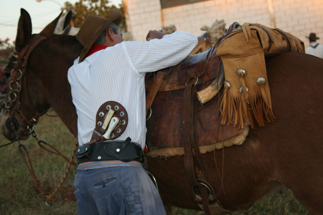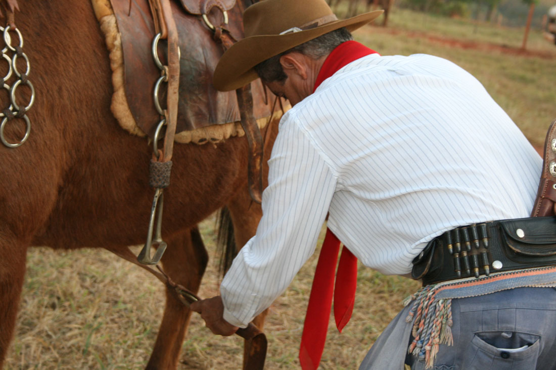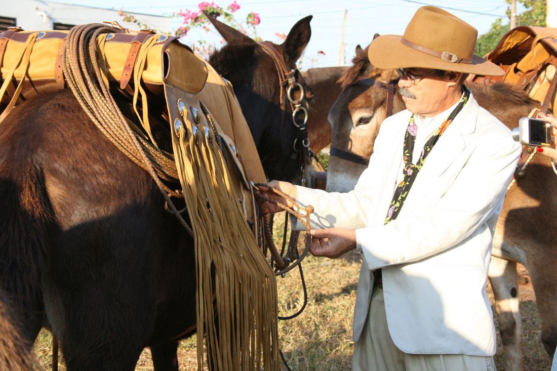 "Neno Carreiro", o peão violeiro, arreia a "Roxinha".