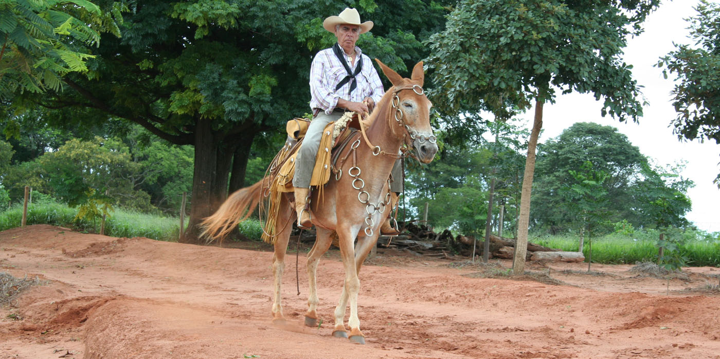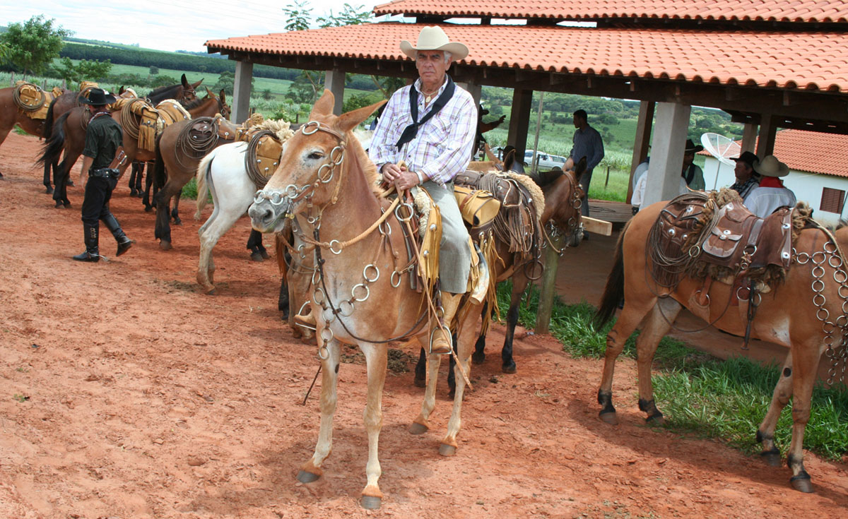 José Ribeiro montado na mula "Salina", no Sítio dos Angicos, Bairro do Malhador, Tanabi-SP, durante Queima do Alho promovida pela Comitiva Boi Soberano, no dia 17 de janeiro de 2.009