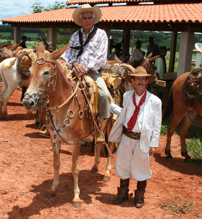 José Ribeiro montado na mula "Salina", ao lado do Dr. Aguinaldo José de Góes, no Sítio dos Angicos, Bairro do Malhador, Tanabi-SP, durante Queima do Alho promovida pela Comitiva Boi Soberano, no dia 17 de janeiro de 2.009