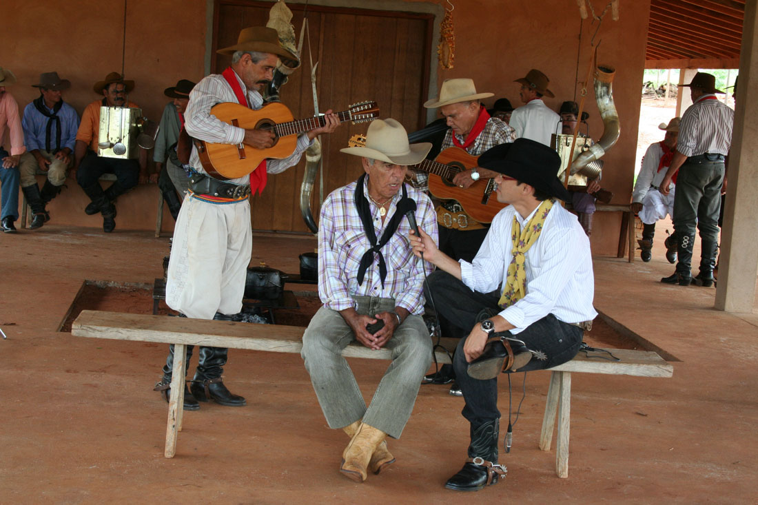 José Ribeiro entrevistado pelo jornalista Marcos Paiva, do programa "De Ponta ŕ Ponta", da TV Tem de Sorocaba-SP (Rede Globo), no Sítio dos Angicos, Bairro do Malhador, Tanabi-SP, durante Queima do Alho promovida pela Comitiva Boi Soberano, no dia 17 de janeiro de 2.009