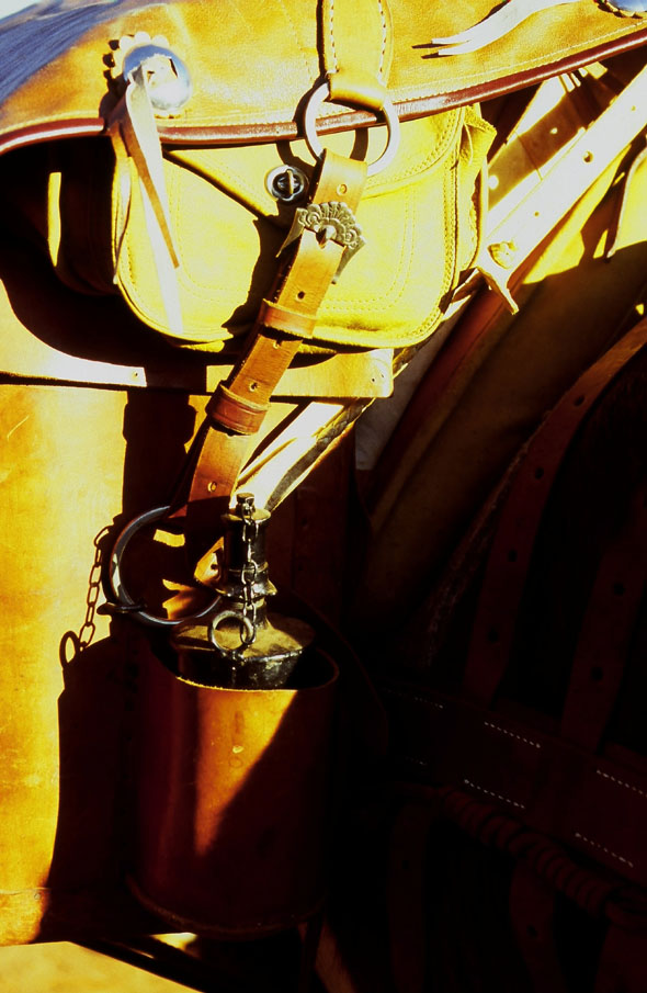 Face traseira da bruaca da esquerda da cargueira "Graúna", vendo-se a lamparina a querosene. Sobre a bruaca, um dobro.