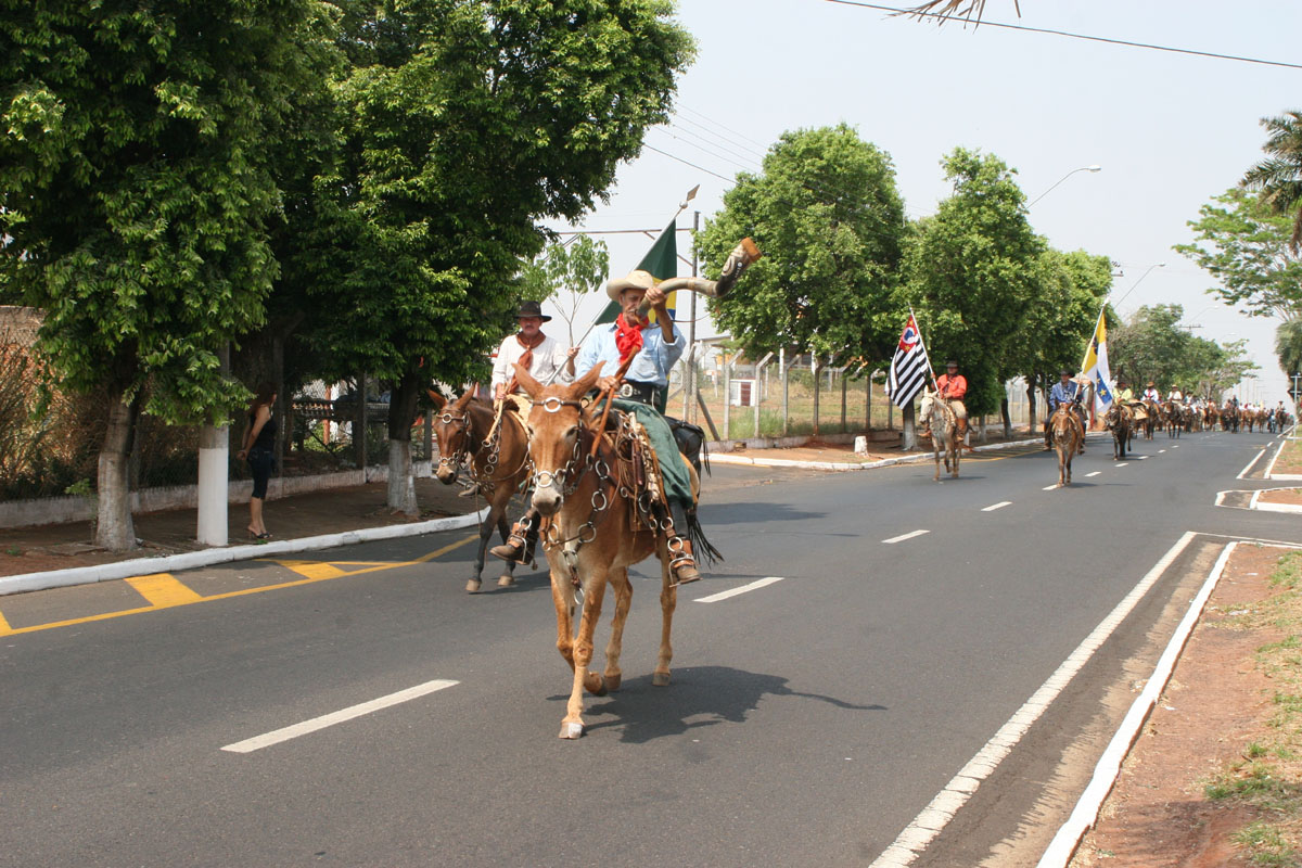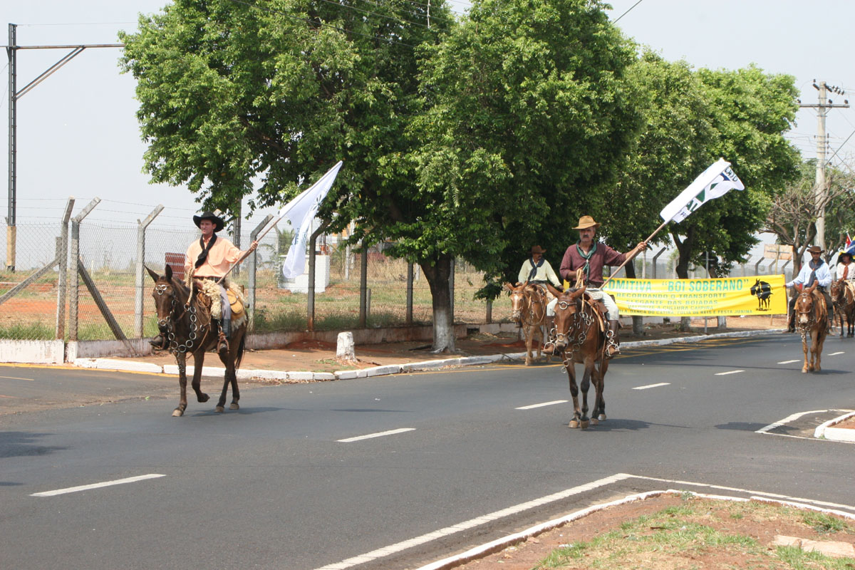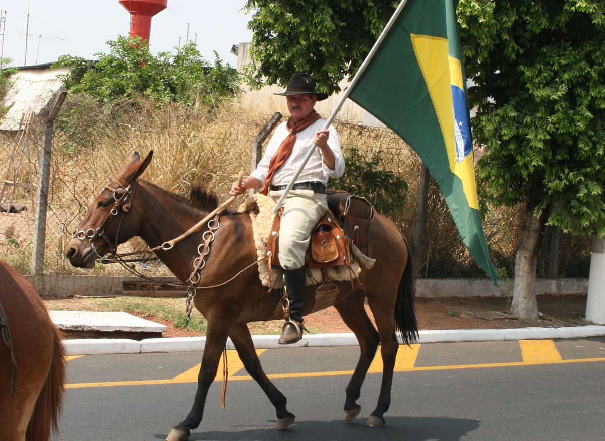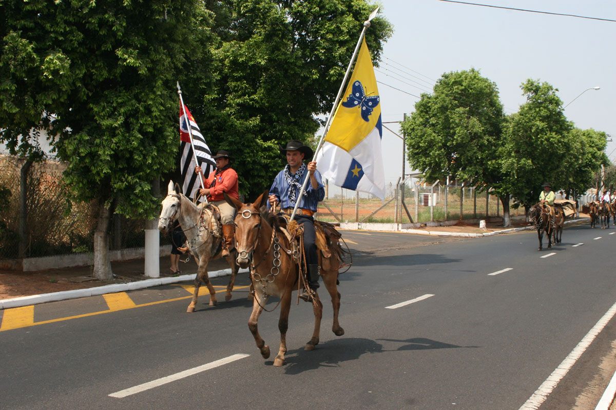 Hércules José Dalóia leva a bandeira paulista e Aparecido Donizete Moreto ("Neno") leva a bandeira de Tanabi.