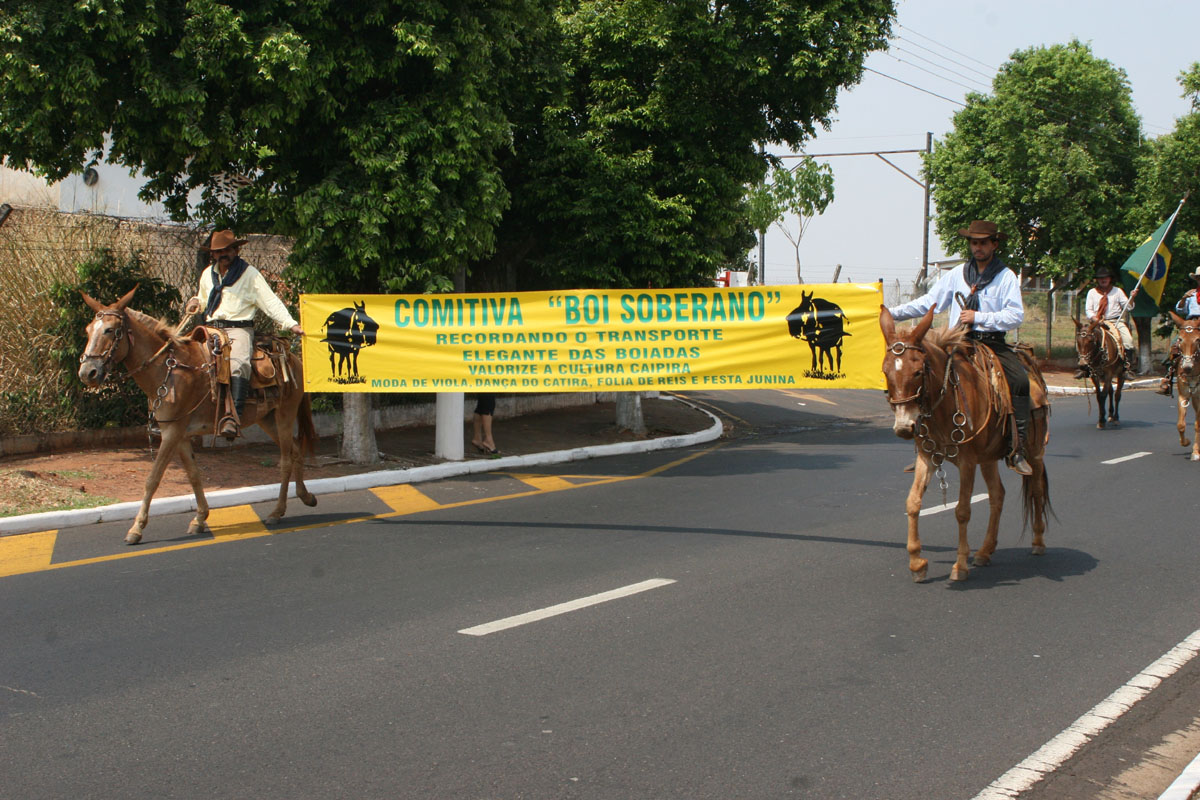 João Roberto de Oliveira (pai) e Gustavo Roberto de Oliveira (filho) levam a faixa da comitiva.