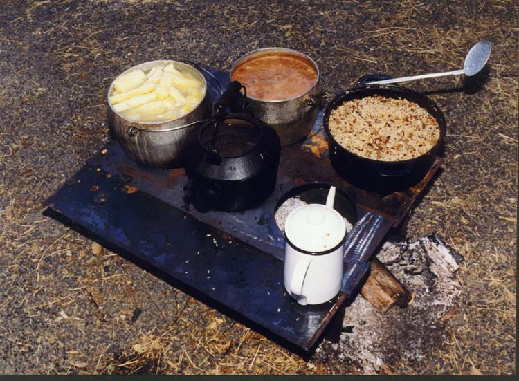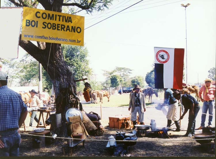Os cozinheiros da comitiva "Boi Soberano" preparam o almoço, é a "queima do alho". Foto: Rúbio/Tanabi-SP |