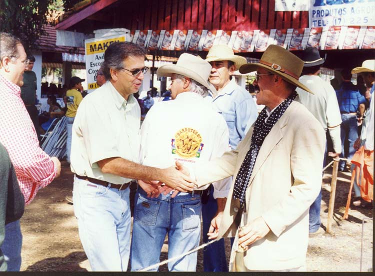O Prefeito de São José do Rio Preto, Edinho Araújo, cumprimentando o comissário da Comitiva Boi Soberano, Dr. Aguinaldo José de Góes. Foto: Rúbio/Tanabi-SP |