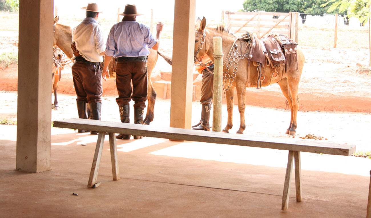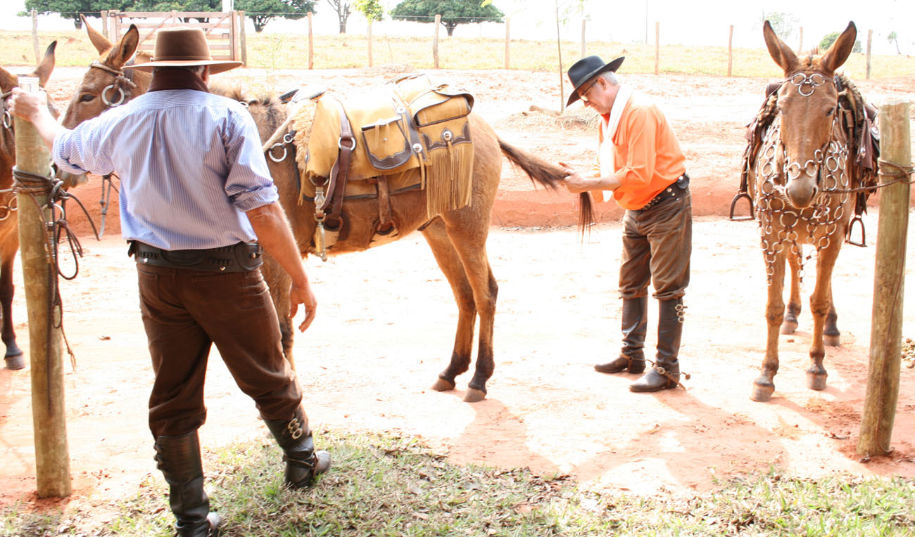 O "Toninho Gonçalves" fazendo um "abacaxi" no rabo do burro "Crioulo", do Gilberto Coleta.