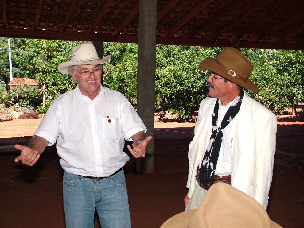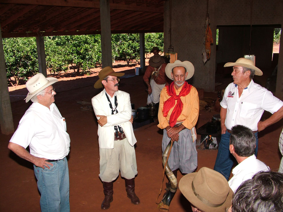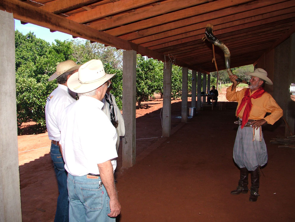 Na chegada, João Paulo Martins e Dorival Gonçalves são recebidos com um toque de berrante pelo ponteiro de boiada, Ílio Lopes .